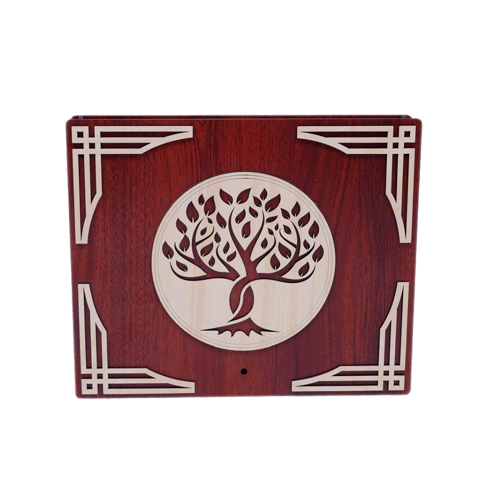 Ce tableau décoratif a été conçu pour ceux qui recherchent une décoration soignée et symbolique. L’arbre de vie, avec ses finitions argentées, crée un contraste magnifique avec le fond et le cadre en bois.