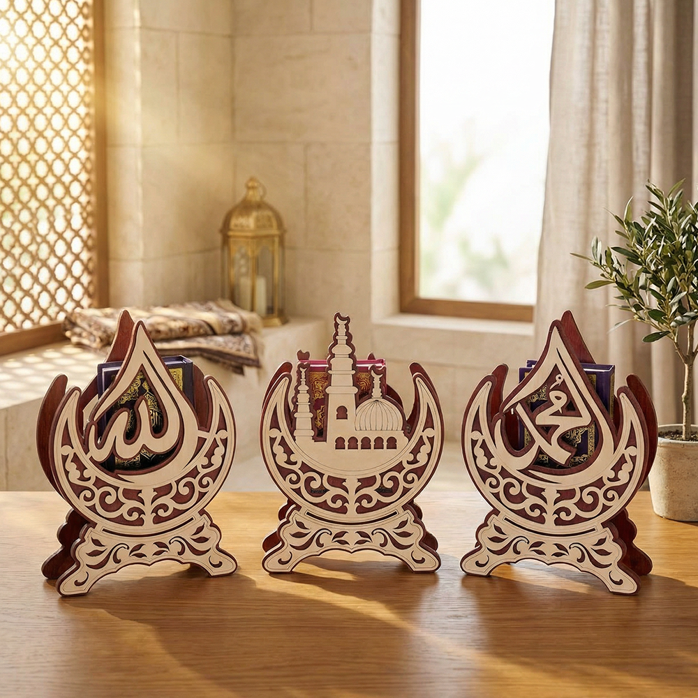 Support Décoratif en Bois avec Coran Inclus Pack De 3